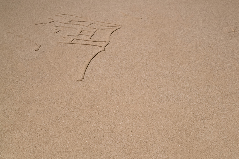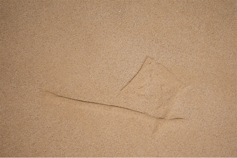 Sand, modelling clay, cloth, film, glue