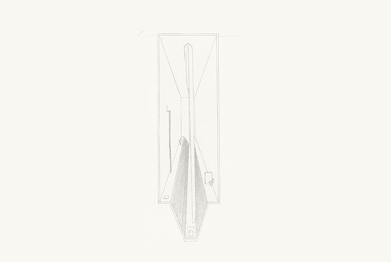 The drawings, which depict vertical interior spaces dug underground, are lighthearted design experiments that stemmed from ideas of acute raw material shortages halting the production of concrete, bricks and steel beams. Sidestepping the current phenomenon of ‘doomsday prepping’, the emergency preparation culture that prepares for the collapse of major Western societies in the near future, the series imagines the ultimate form of future luxury to be the ability to dig into the warmth of the deep Earth.